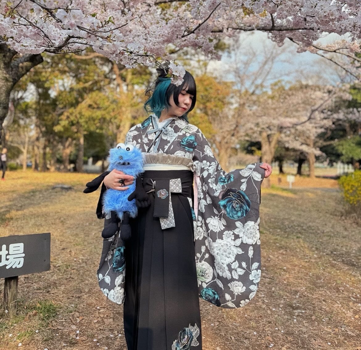 一目惚れした「ガーデンローズ」に、髪色とスンスンをカラーリンクさせたハイセンスな着こなし。可愛いだけじゃない、自立したカッコよさを感じさせる唯一無二の佇まいです。「一生忘れない思い出」になったという、こだわり満載のスタイリッシュな卒業記念です。