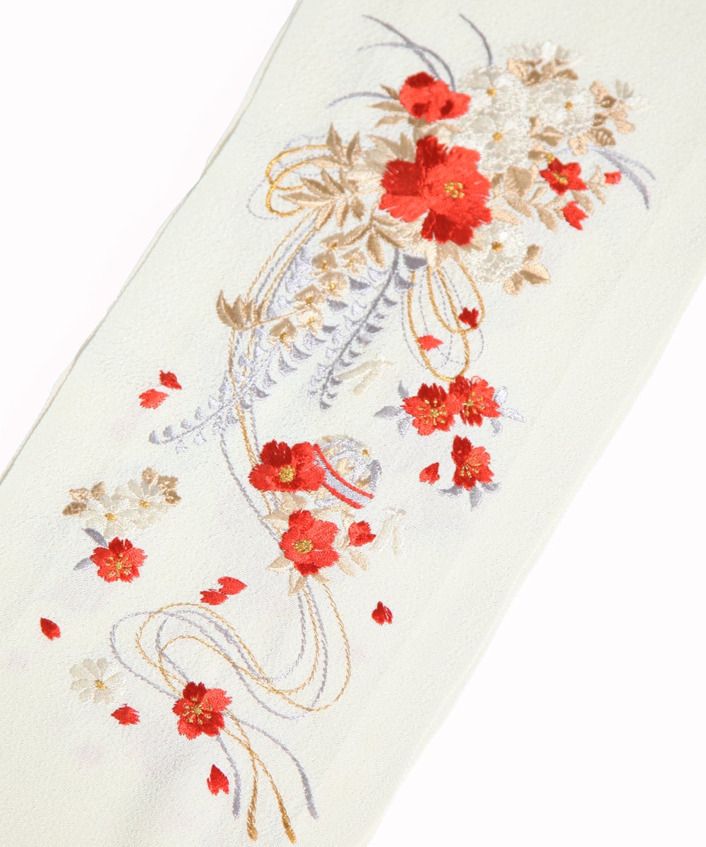 半襟は長襦袢に縫いつけた状態でお送りします。髪飾りはセットに含まれていません。