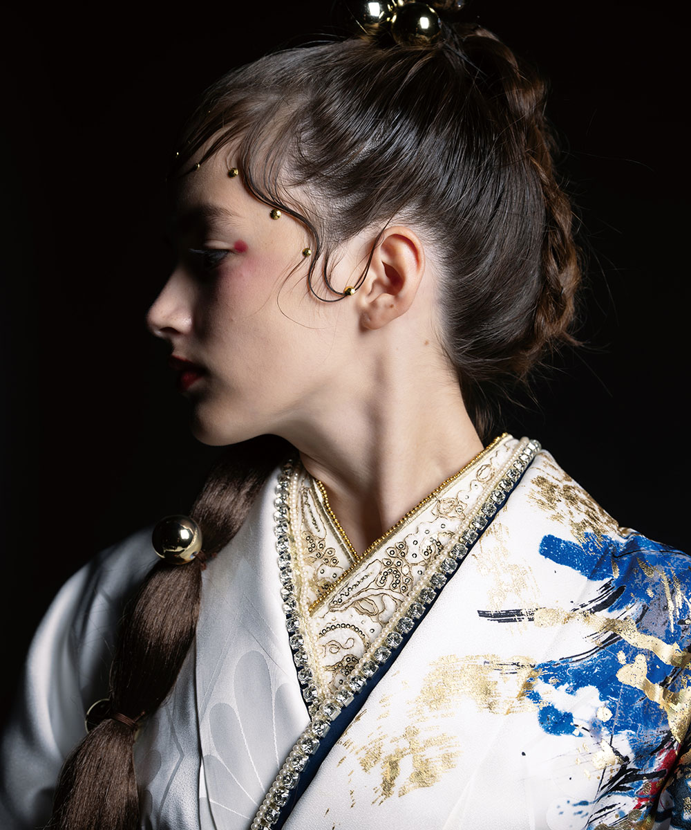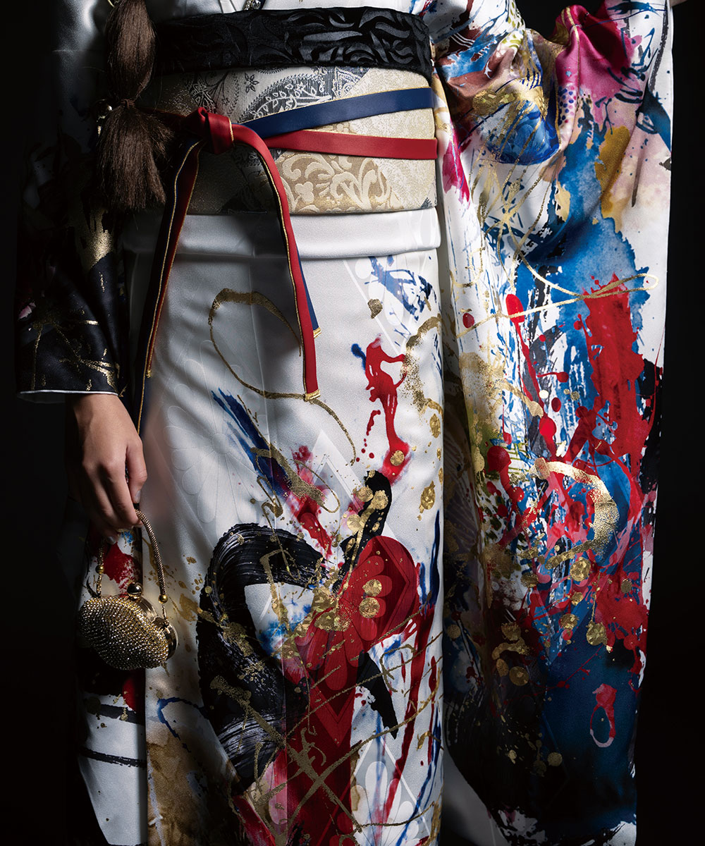 墨が流れ、色が舞い、霊獣が息づく――晴れの日を鮮烈に彩る「墨流しの風」。