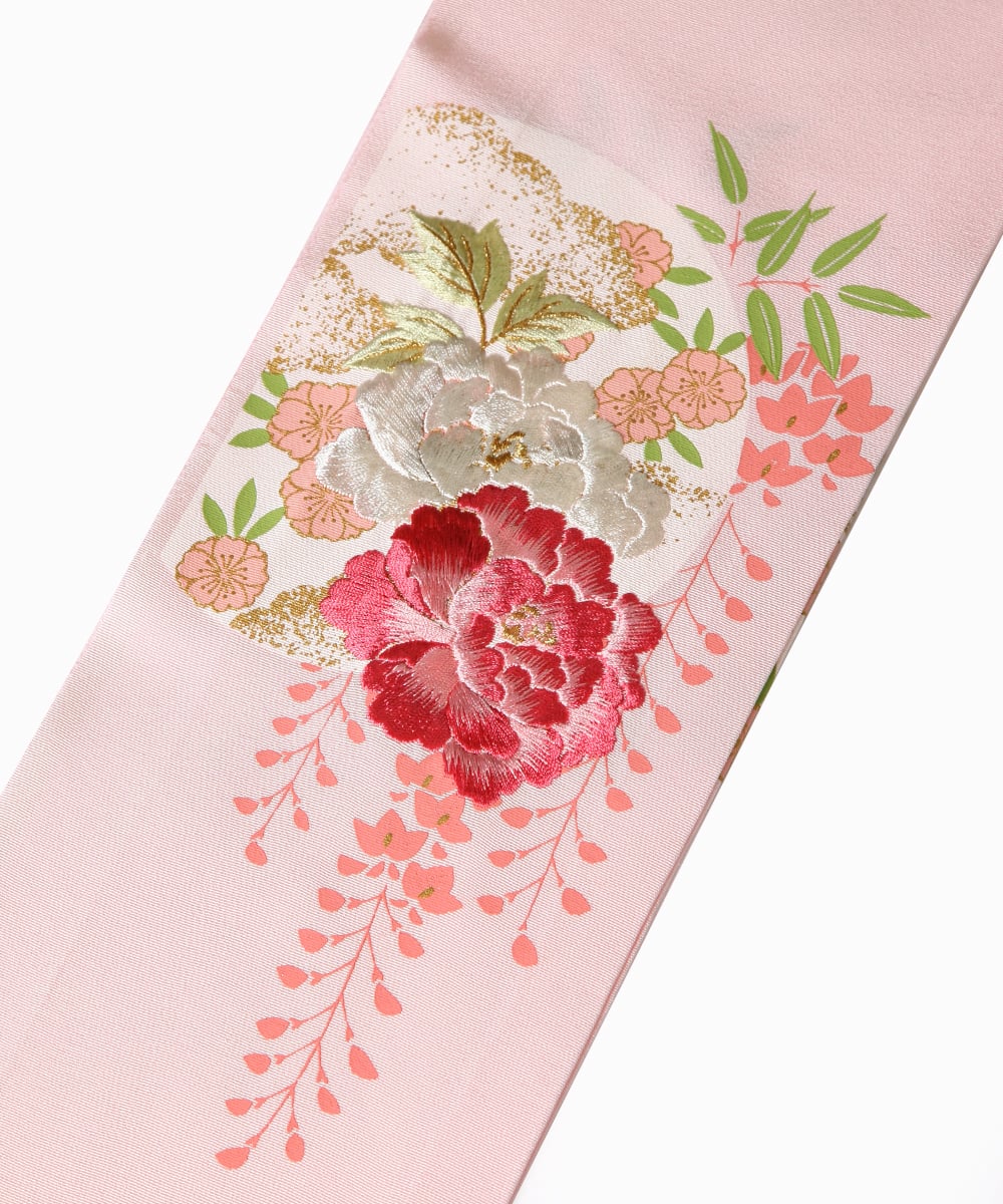 パール使いがポイントの気品あふれる重ね襟。豪華な刺繍の半襟と合わせて、美しく可憐にお顔まわりを彩ってくれます。