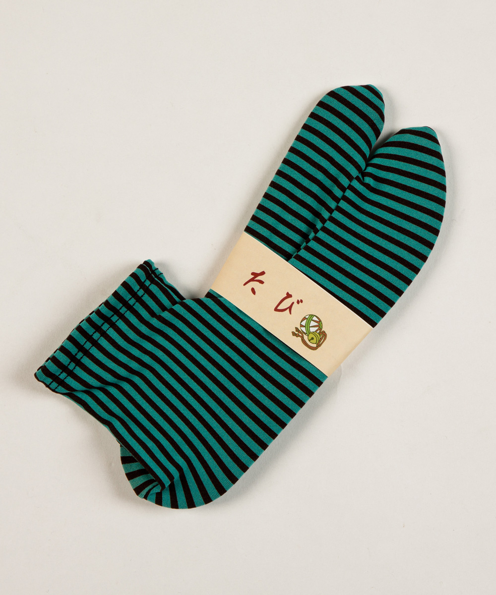 【販売】おしゃれ足袋★ストライプ柄★グリーン(フリーサイズ)